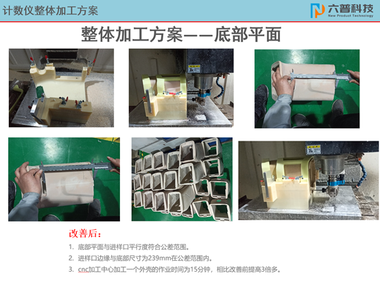 上海六普为了提升产量以及满足客户更大的交货量。不断地优化加工工艺和工序,在提升能效的路上不断前行。从最初的月产量20台到60台,从模具成型,二次加工,到后续手工精修环节都进行了一系列的优化调整。最近客户又提出 要我们实现100台每月的厂能,办法总比问题多,六普技术部在许经理的带领下不断攻坚克难,在CNC加工的环节再次创新,不断调整优化工装设计方案和加工方案,经过2个多月的摸索测试终于把整个项目加工的瓶颈—CNC加工一次性合格率和加工速度再次大幅度提升,效能提升了近三倍!